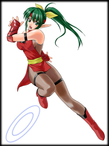 | 戦闘集団「朧」出身のアームズ・プレイヤー。現在は修行のためパーティに加わっている。 いつも持ち歩いているバックパックの中にはさまざまな武器が収められている。武器マニアであり珍しい武器を目にすると、とたんに冷静でなくなってしまう。 |